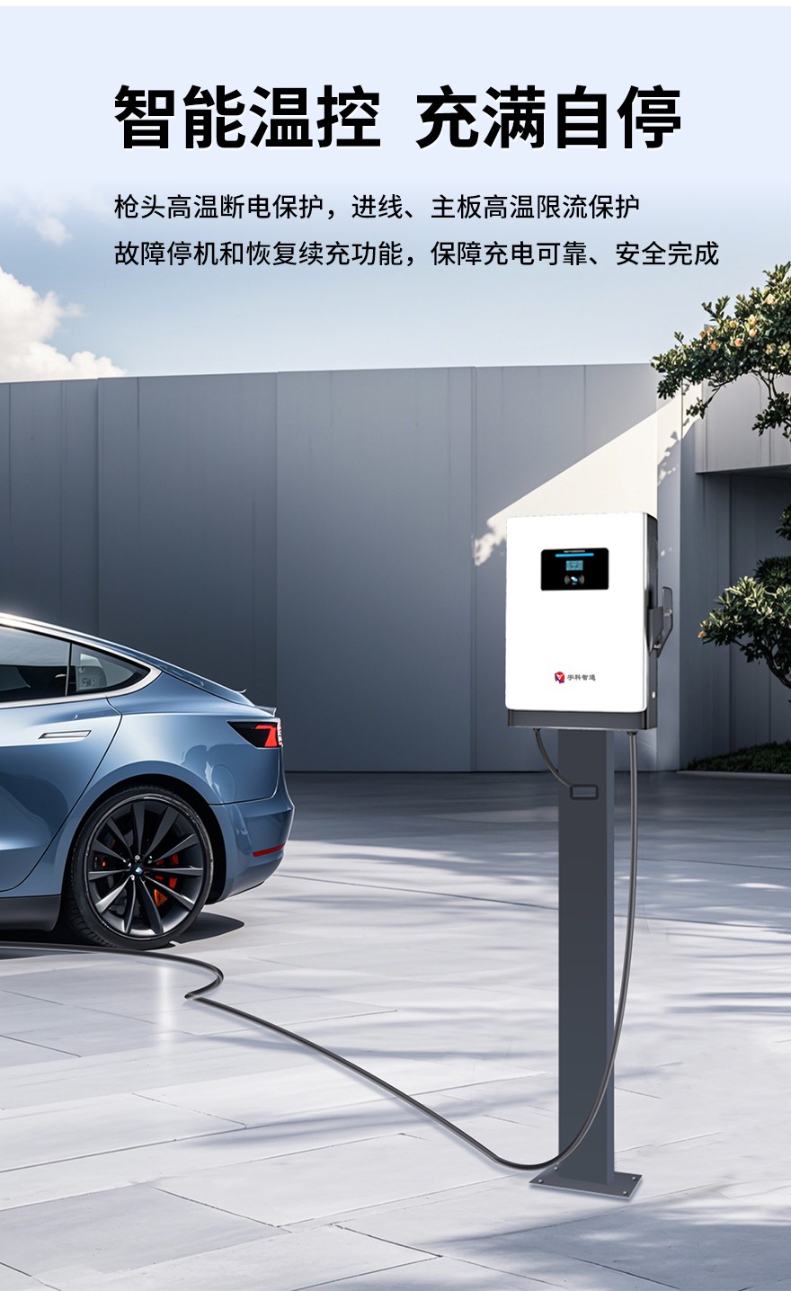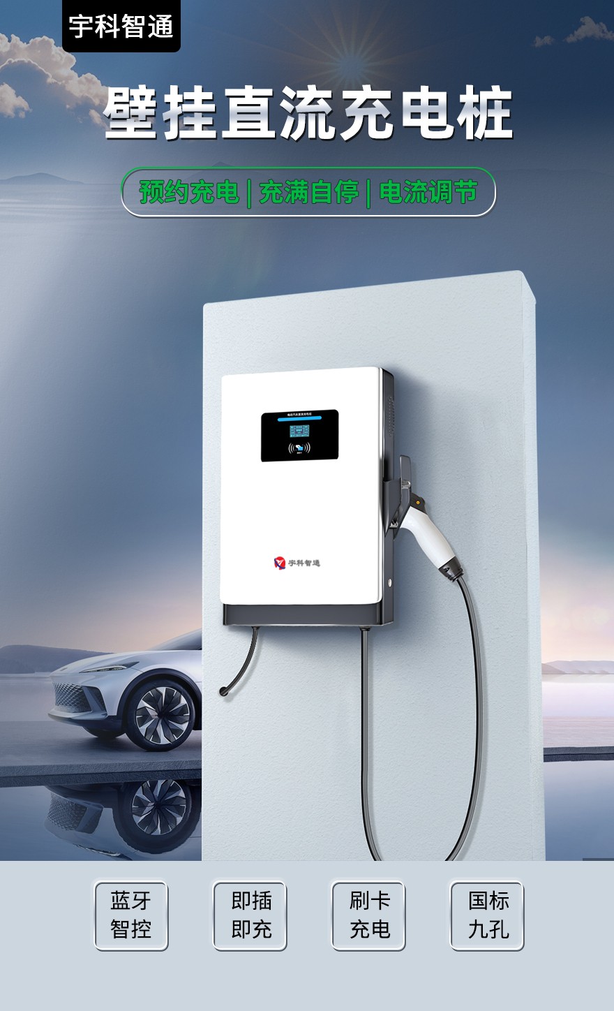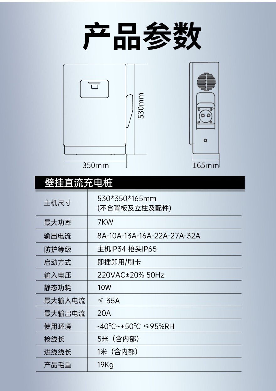 本產(chǎn)品通過立柱或壁掛方式安裝在室外或建筑物內(nèi),為電動(dòng)汽車進(jìn)行充電。
